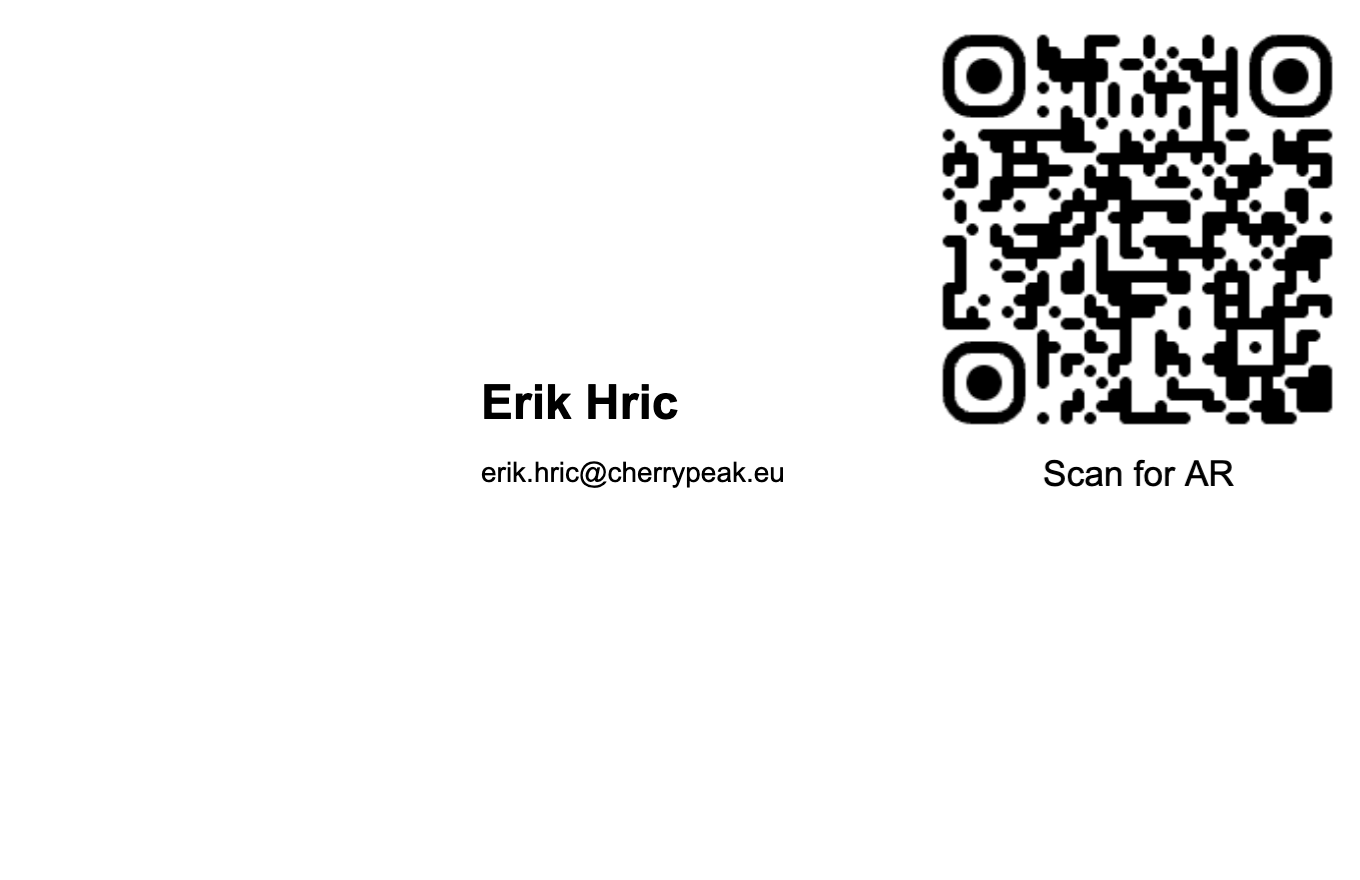 Augmented reality business card on Meishi Cards. Open this page with JavaScript enabled for the full interactive experience.