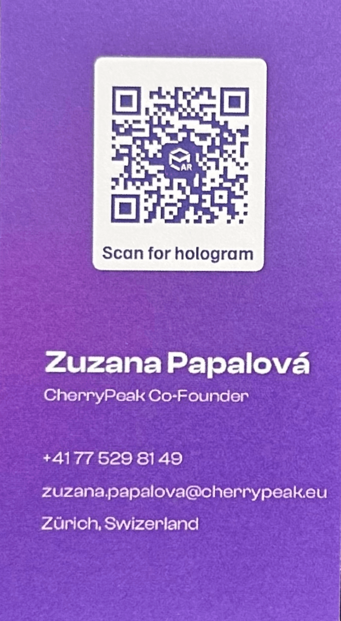 Augmented reality business card on Meishi Cards. Open this page with JavaScript enabled for the full interactive experience.