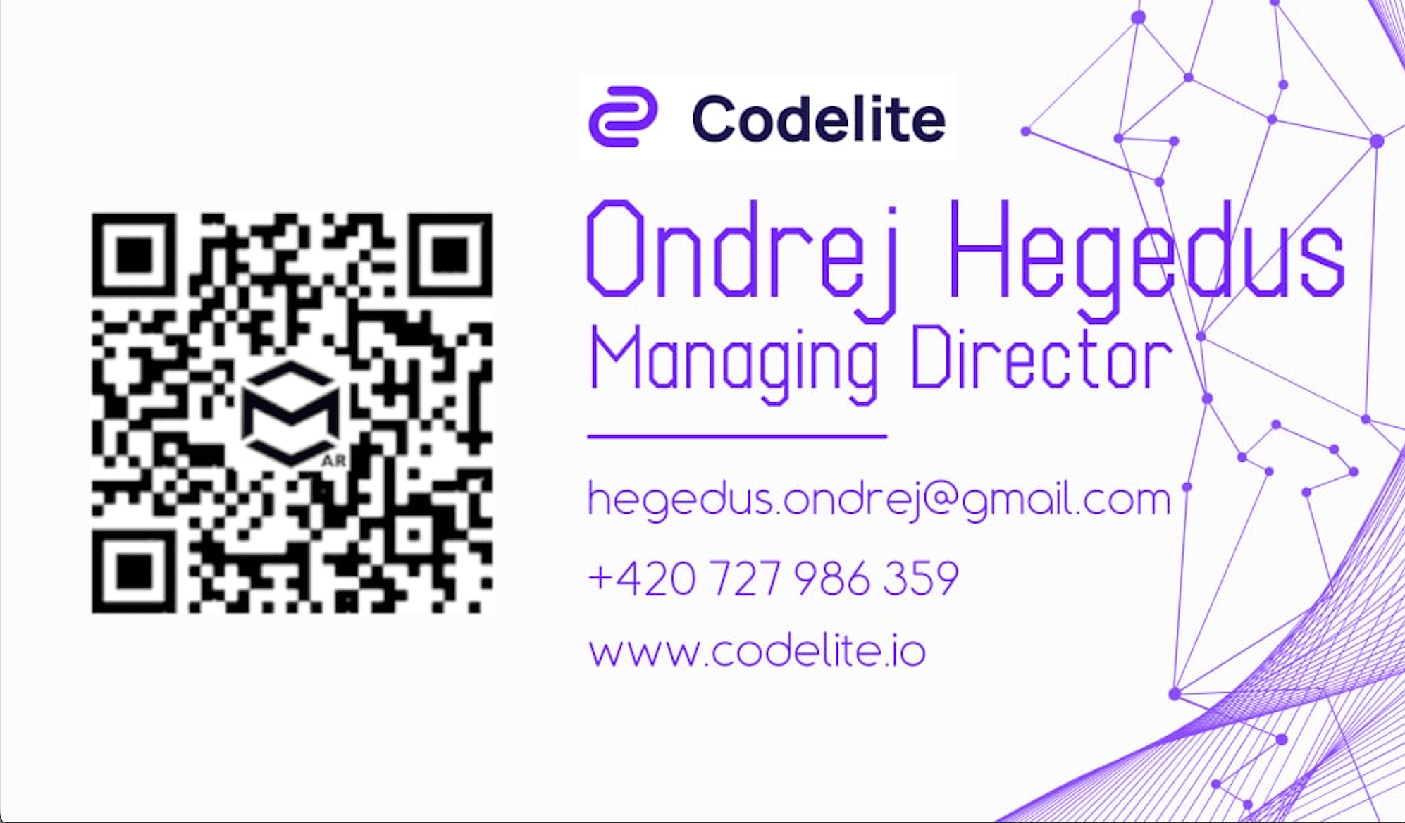 Augmented reality business card on Meishi Cards. Open this page with JavaScript enabled for the full interactive experience.